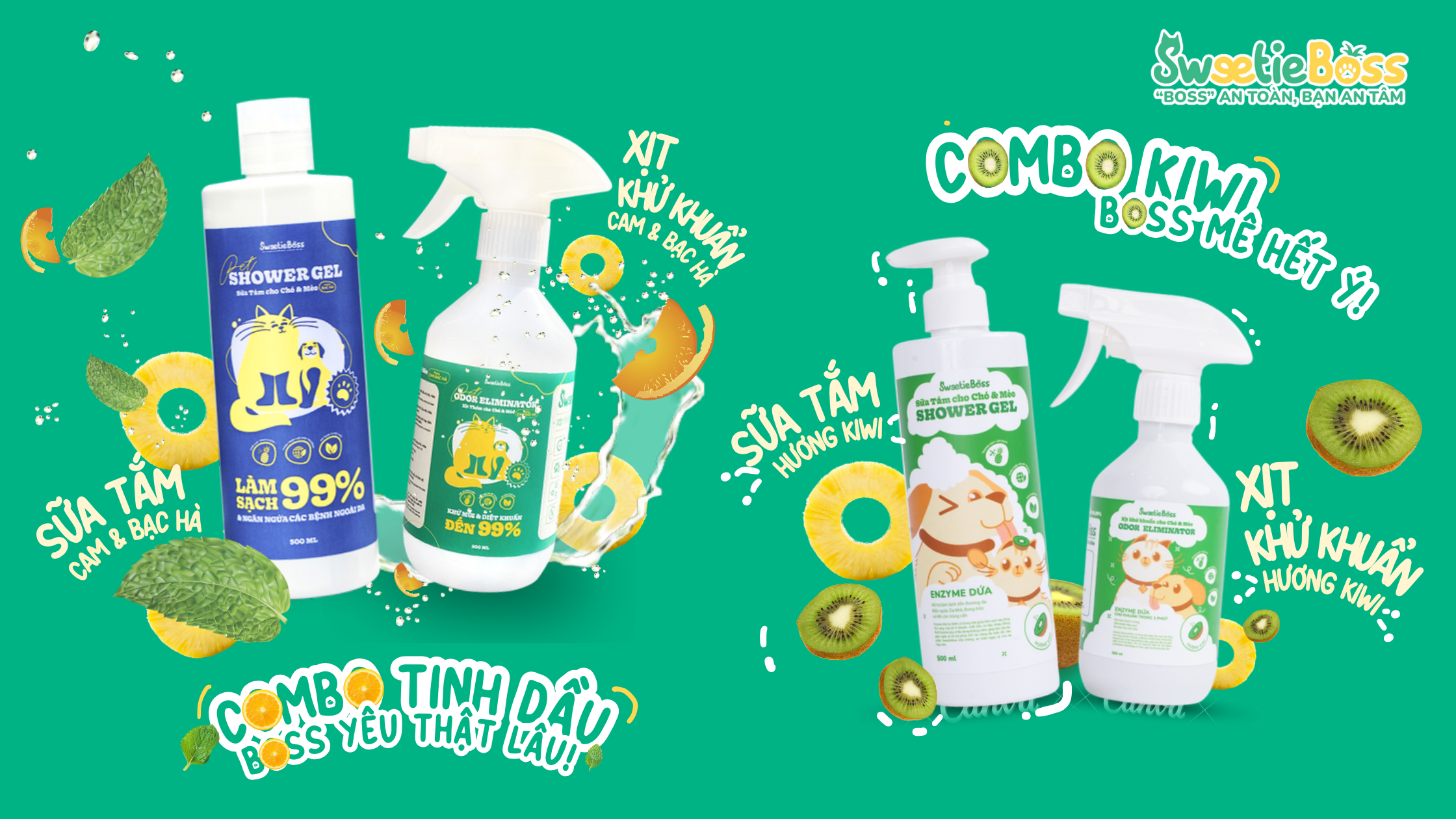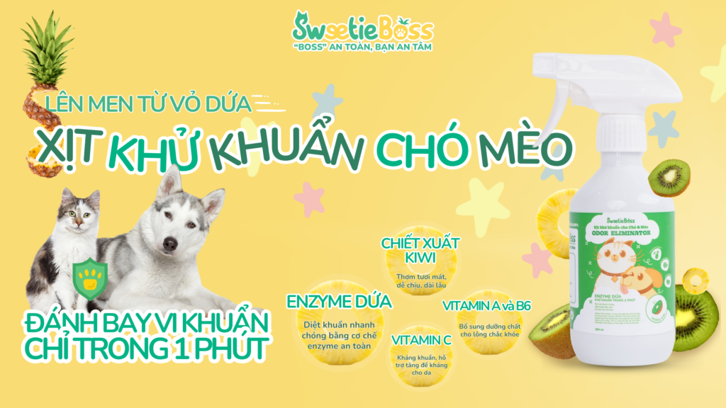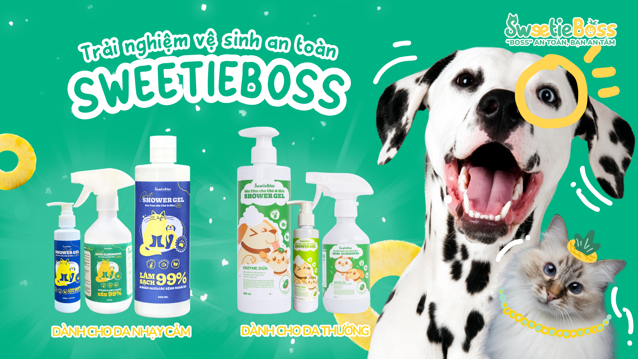 SweetieBoss là thương hiệu sản phẩm chăm sóc chó, mèo từ Enzyme Dứa đầu tiên tại Việt Nam.